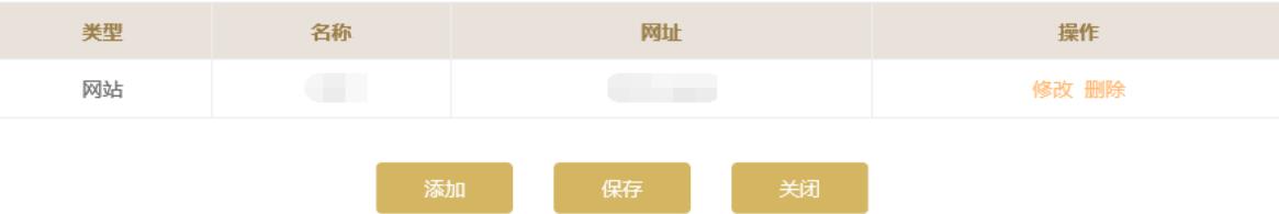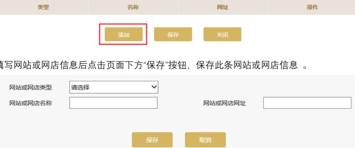 如需繼續(xù)添加其他網(wǎng)站或網(wǎng)店信息,點(diǎn)擊頁面下方的“添加”按鈕進(jìn)行添加。