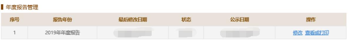 提交年報(bào)后如需修改,重新登錄國(guó)家企業(yè)信用信息公示系統(tǒng),點(diǎn)擊“操作”一欄中的“修改”進(jìn)入年報(bào)填報(bào)頁面對(duì)年報(bào)進(jìn)行修改。