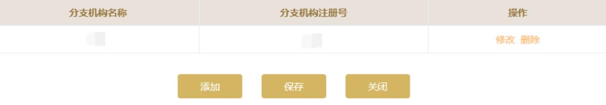 如需繼續(xù)添加其他分支機(jī)構(gòu)信息,點(diǎn)擊頁面下方的“添加”按鈕進(jìn)行添加。