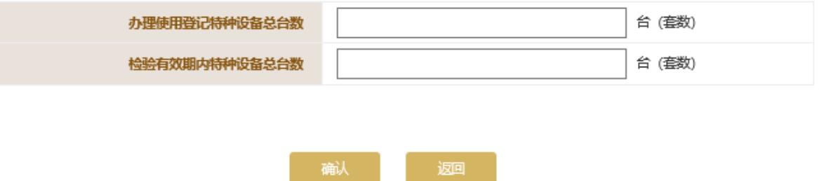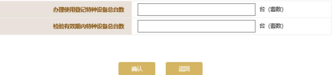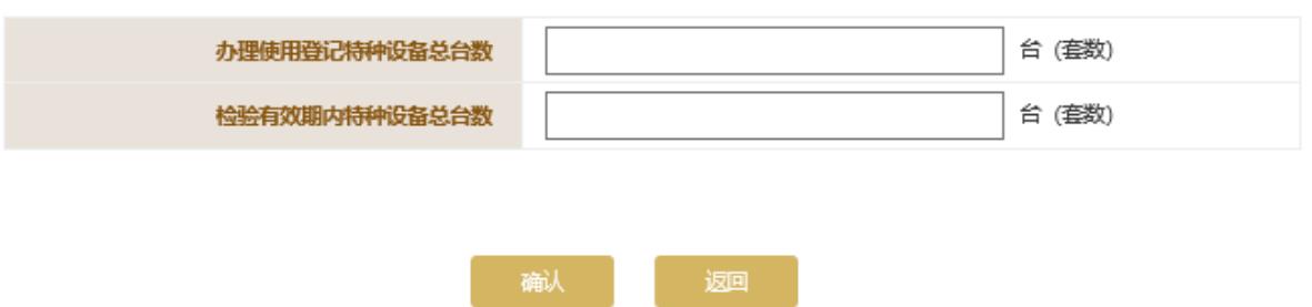 根據(jù)實(shí)際情況填寫特種設(shè)備信息,點(diǎn)擊頁面下方的“確認(rèn)”按鈕保存本頁信息。