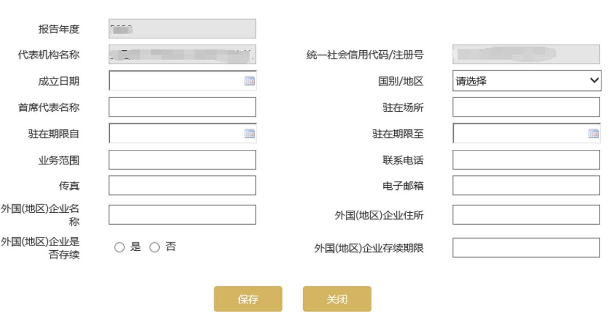 6.填寫外國(guó)(地區(qū))企業(yè)情況(如代表機(jī)構(gòu)業(yè)務(wù)活動(dòng)開展情況頁面“是否從事營(yíng)利性活動(dòng)”選擇的“否”則不需要填寫)