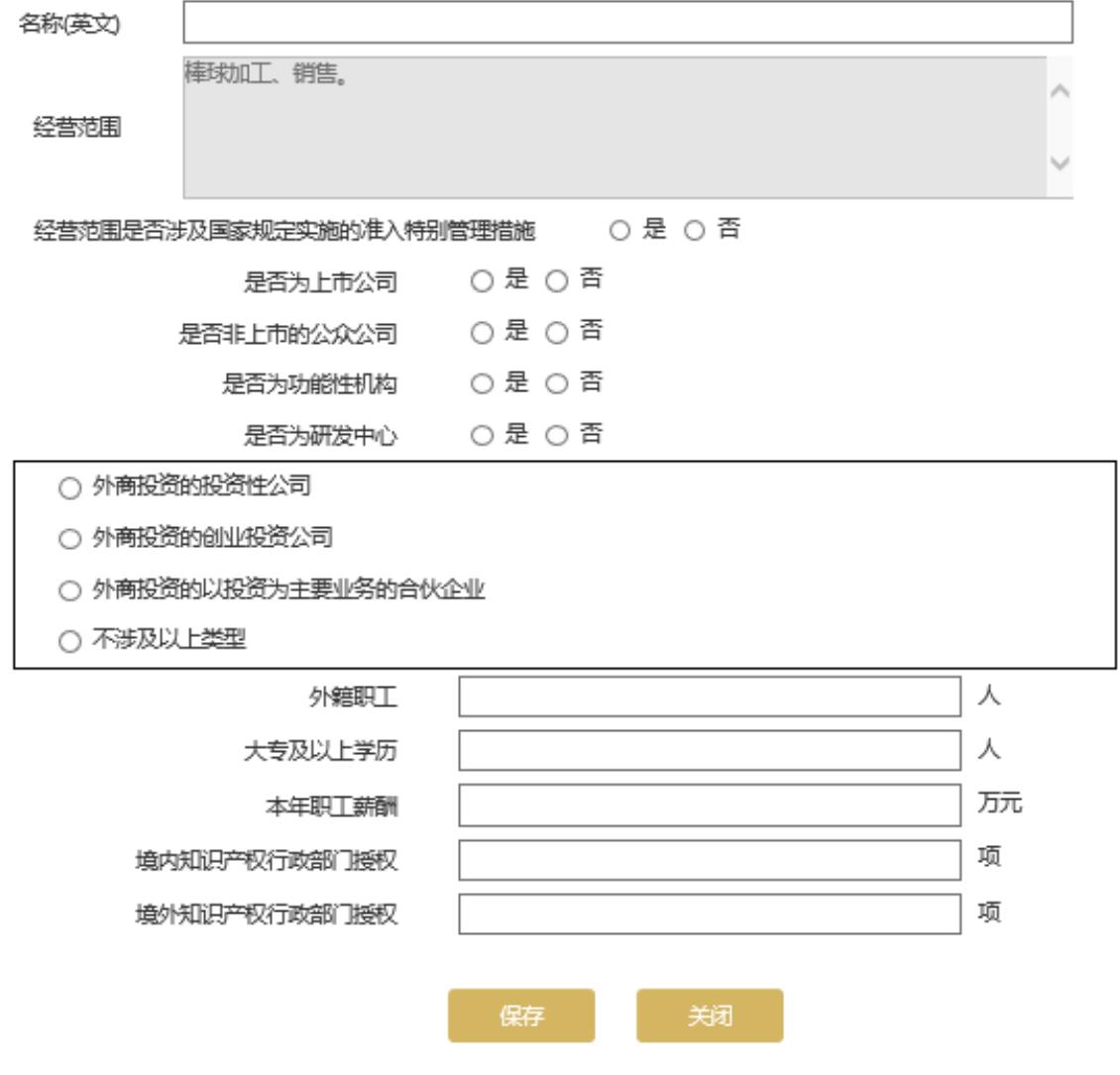 根據(jù)實(shí)際情況填寫外商投資基本情況,點(diǎn)擊頁面下方的“保存”按鈕保存本頁信息。