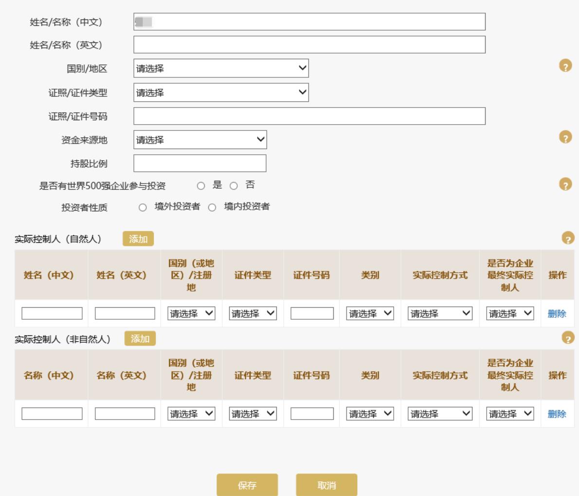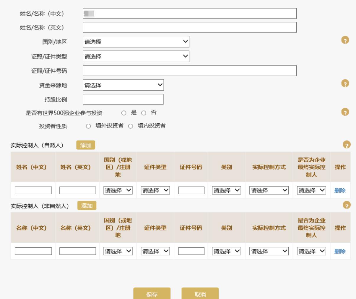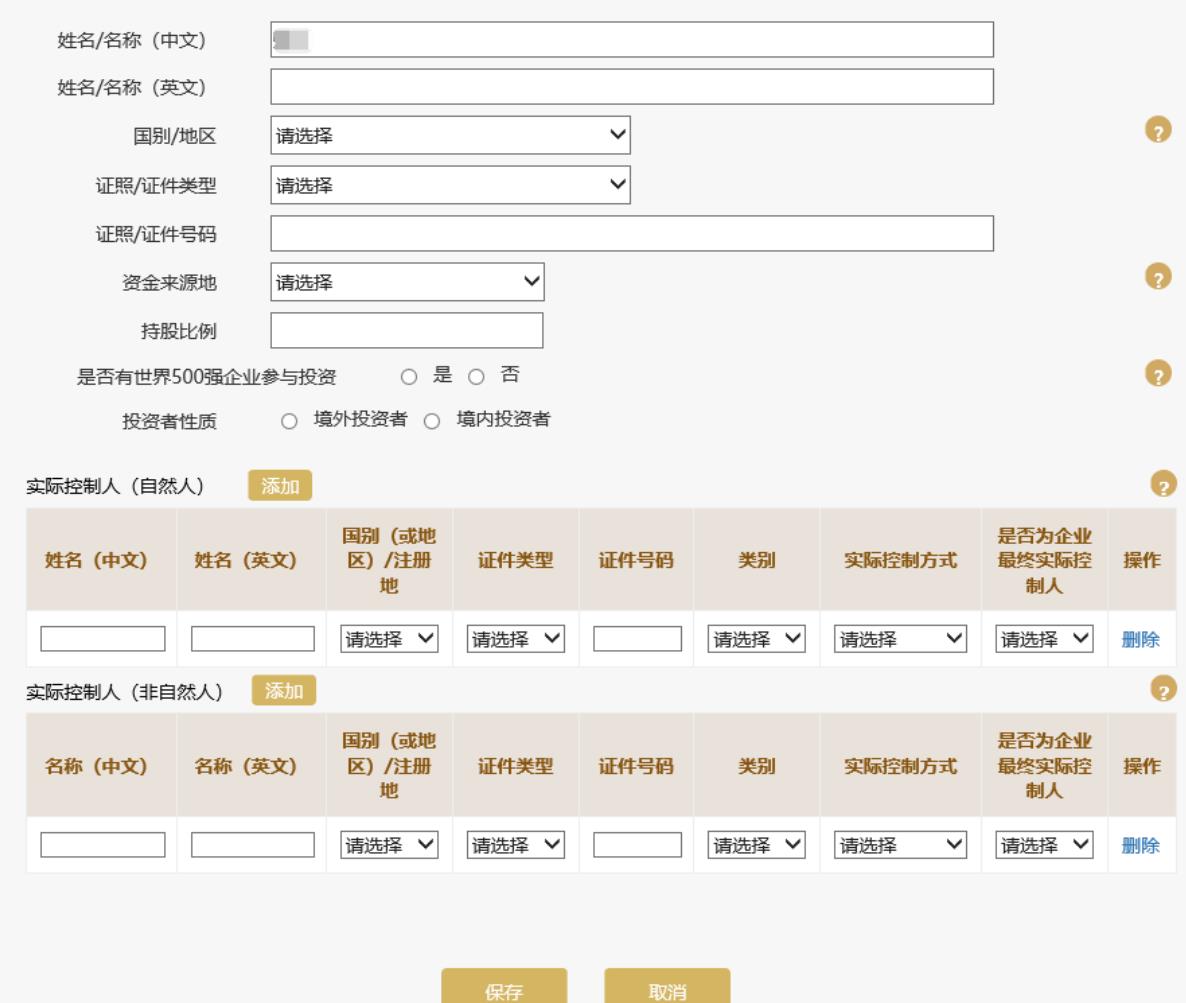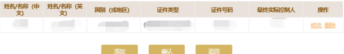 如需繼續(xù)添加其他投資者信息,點(diǎn)擊頁面下方的“添加”按鈕進(jìn)行添加。