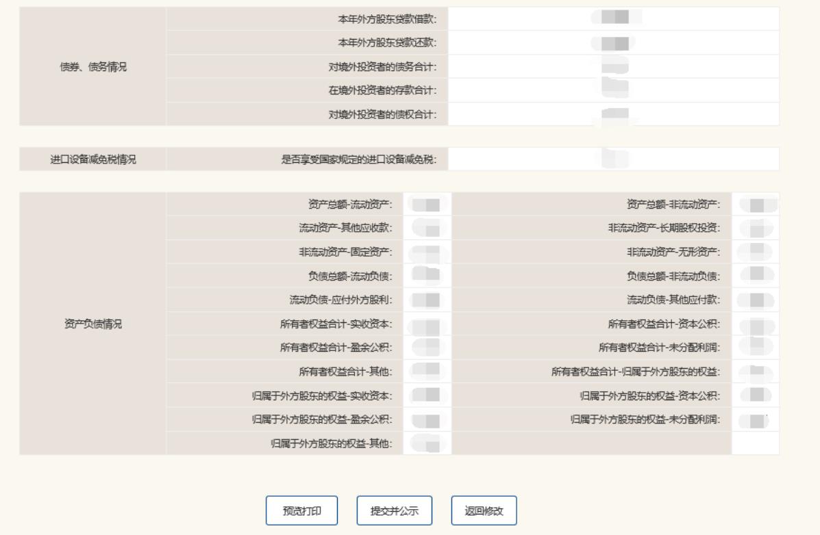 以上年報(bào)內(nèi)容都填寫完畢后,進(jìn)入預(yù)覽并公示頁面預(yù)覽上面填寫的內(nèi)容。