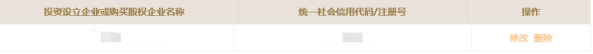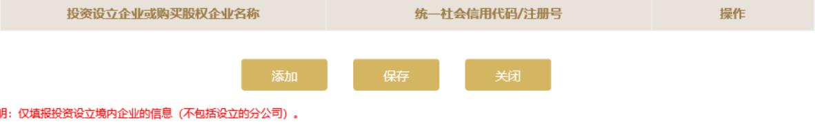 6. 填寫對(duì)外投資信息(如基本信息頁面“是否有投資信息或購(gòu)買其他公司股權(quán)”選擇的“否”則不需要填寫)