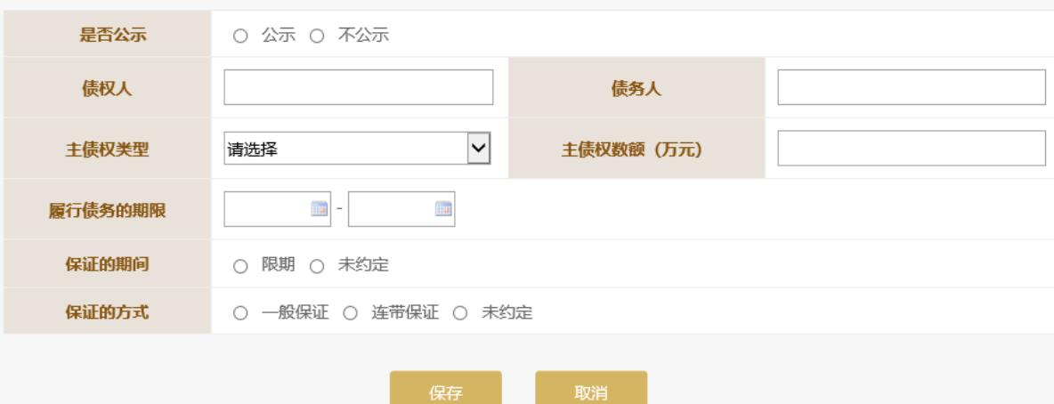 填寫對(duì)外擔(dān)保信息后點(diǎn)擊頁面下方“保存”按鈕,保存此條對(duì)外擔(dān)保信息 。