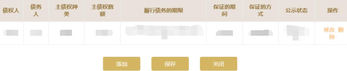 點(diǎn)擊“添加”按鈕,添加對(duì)外擔(dān)保信息欄。