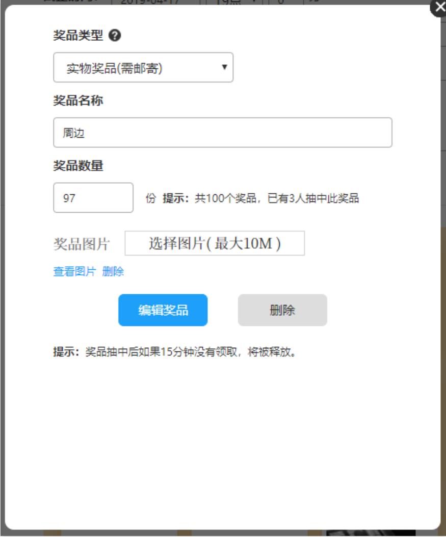 實物獎品:一般是需要郵寄給中獎者,所以添加此類型獎品,抽中后會提示要求中獎人填寫姓名,聯(lián)系方式與郵寄地址。