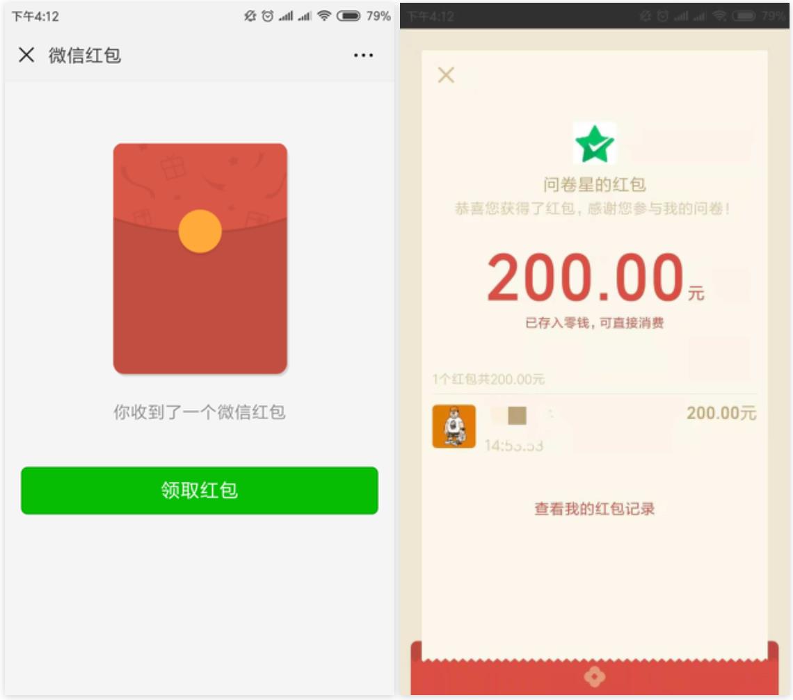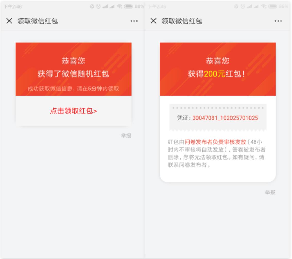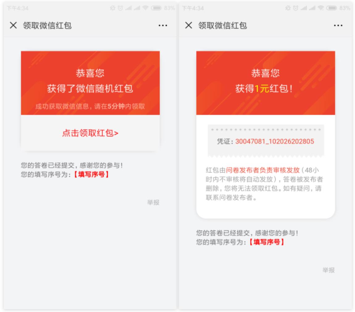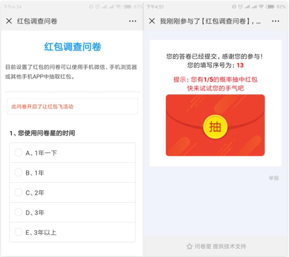 問卷星微信紅包效果圖及設(shè)置方法