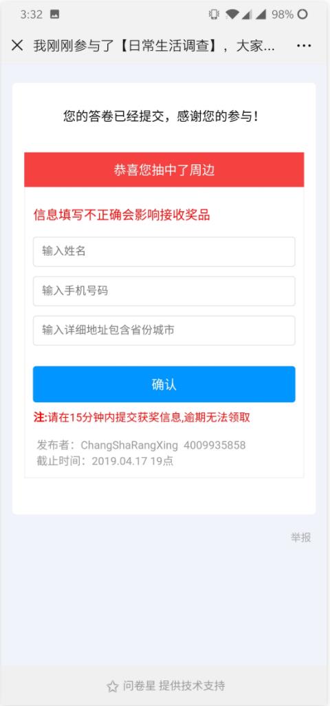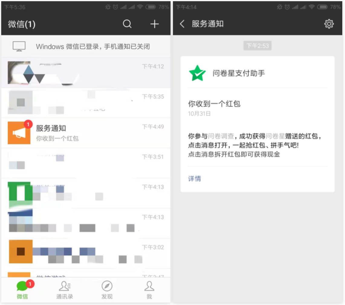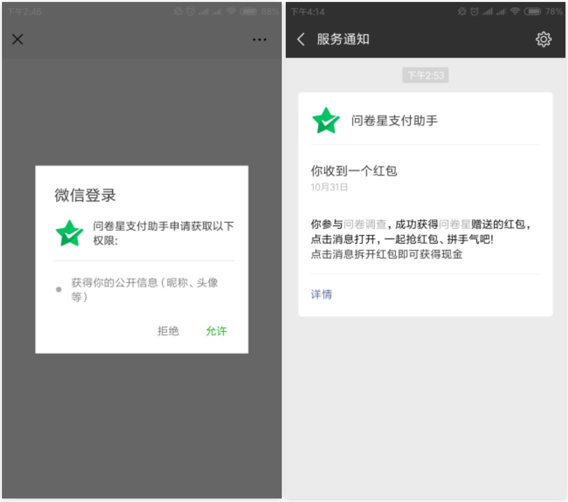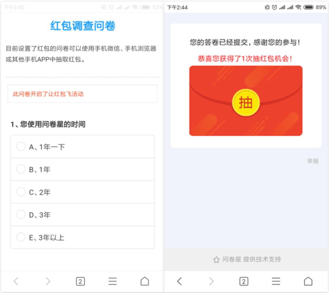 問卷星微信紅包效果圖及設(shè)置方法