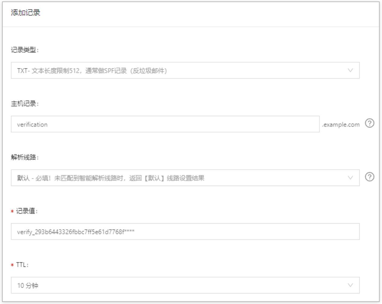 記錄值 輸入系統(tǒng)生成的記錄值。verify_293b6443326fbbc7ff5e61d7768f****