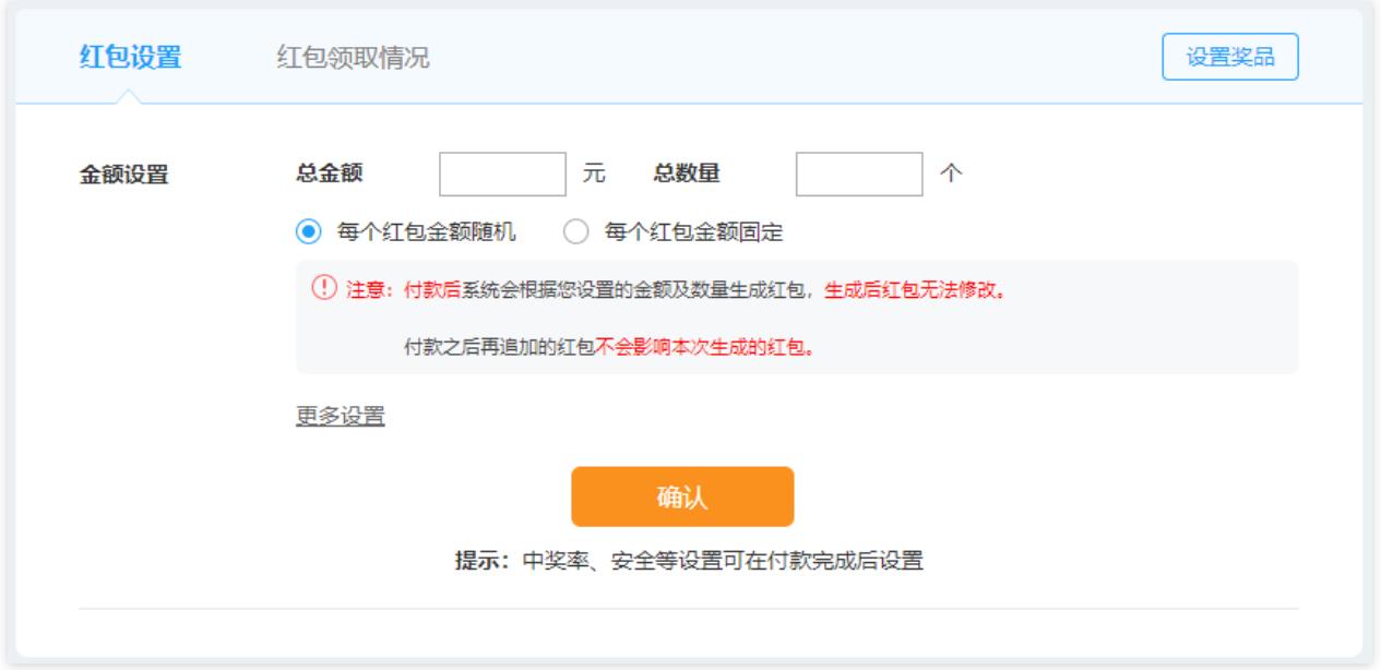 9.用戶可以自主設(shè)置單個紅包的金額固定還是隨機。但是紅包總金額和紅包總數(shù)量一致時,不論用戶設(shè)置如何,單個紅包的金額都是固定的。