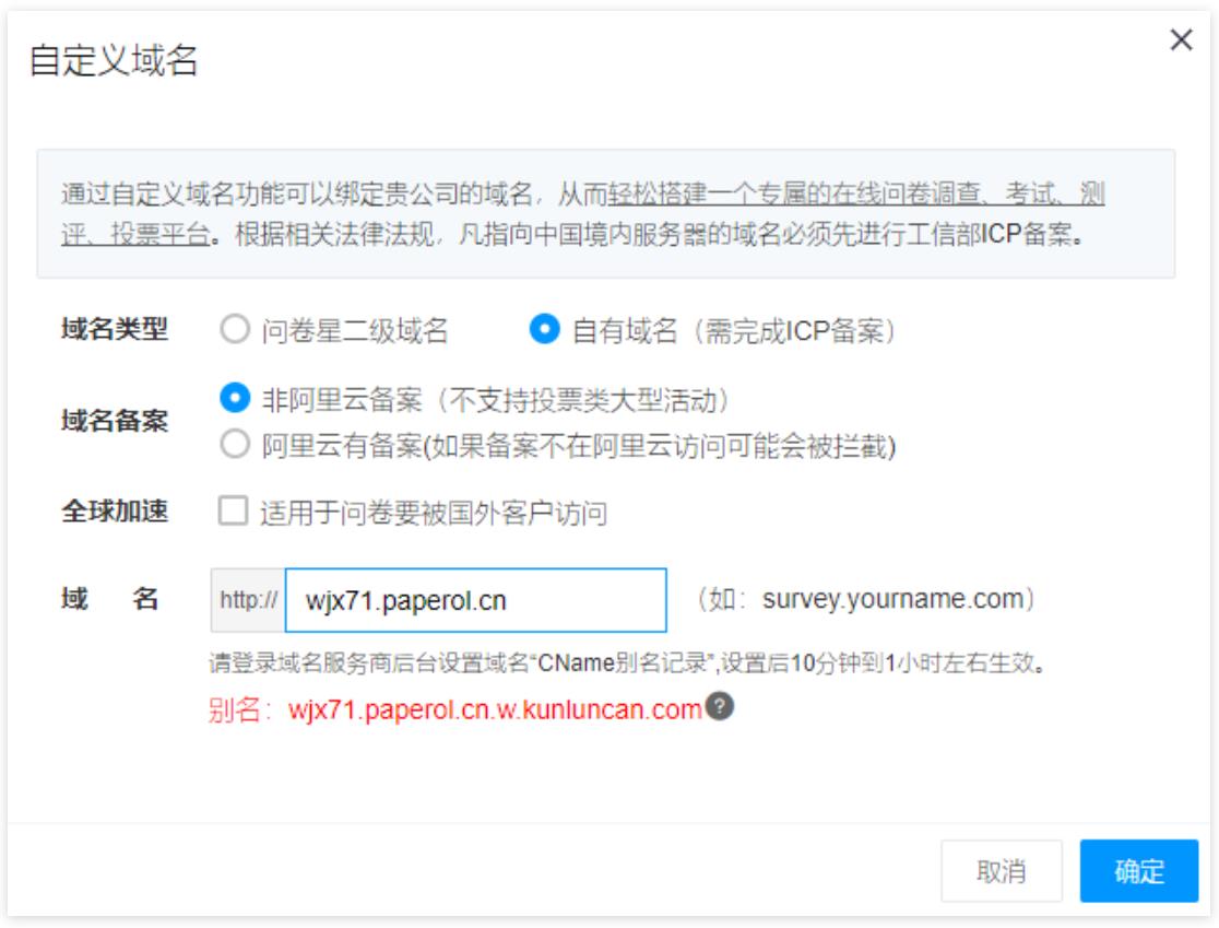 問卷星系統(tǒng)后臺如何綁定我自己的域名?