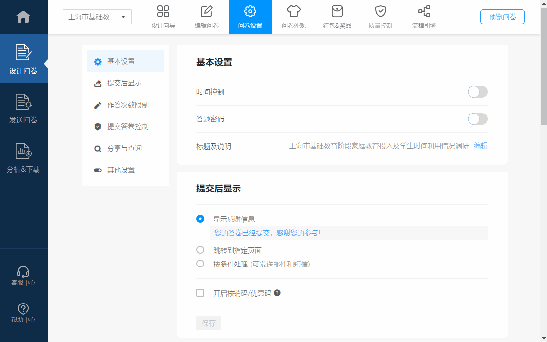 問卷星自定義填寫完成問卷后處理規(guī)則