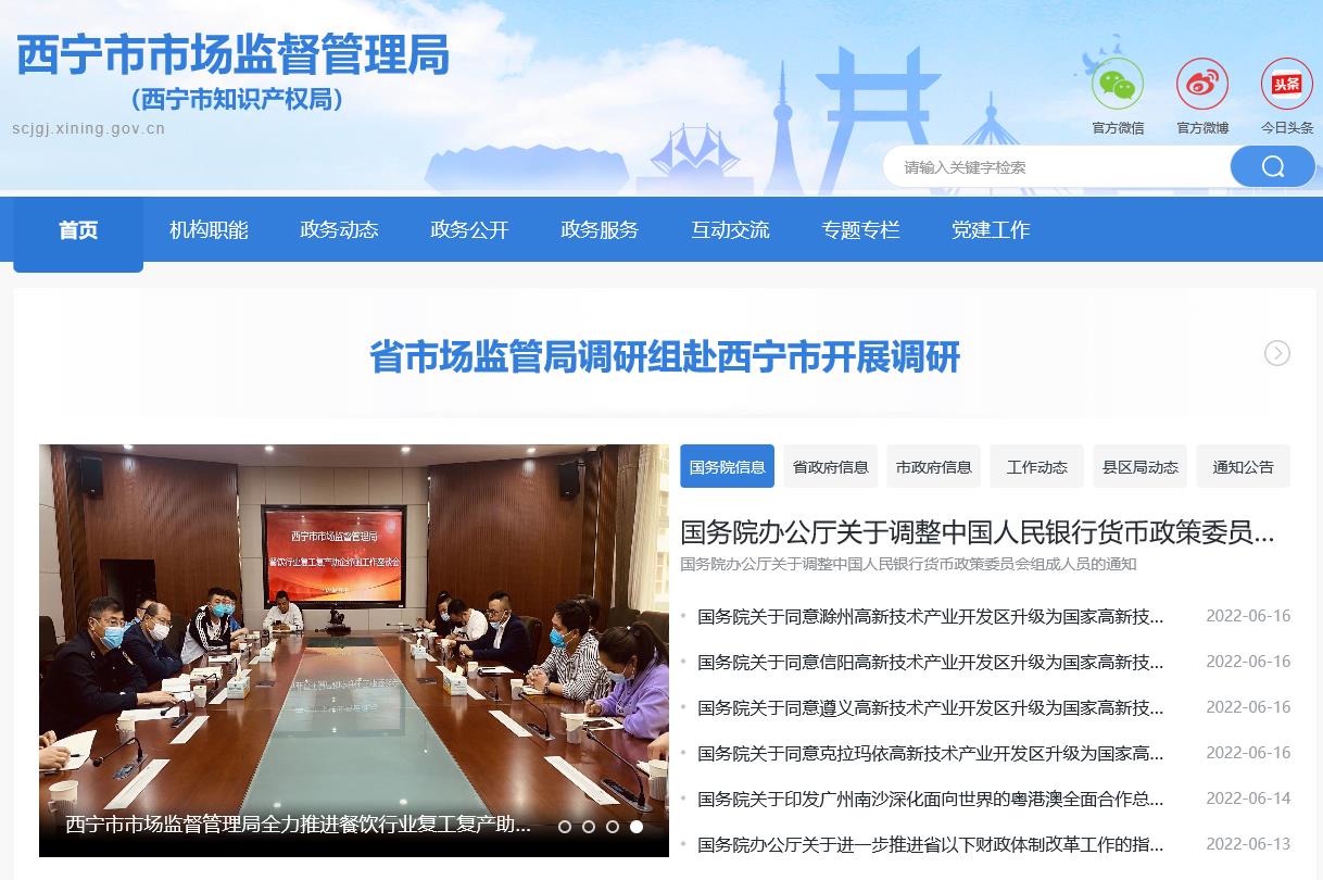 西寧市場監督管理局網址:https://scjgj.xining.gov.cn/