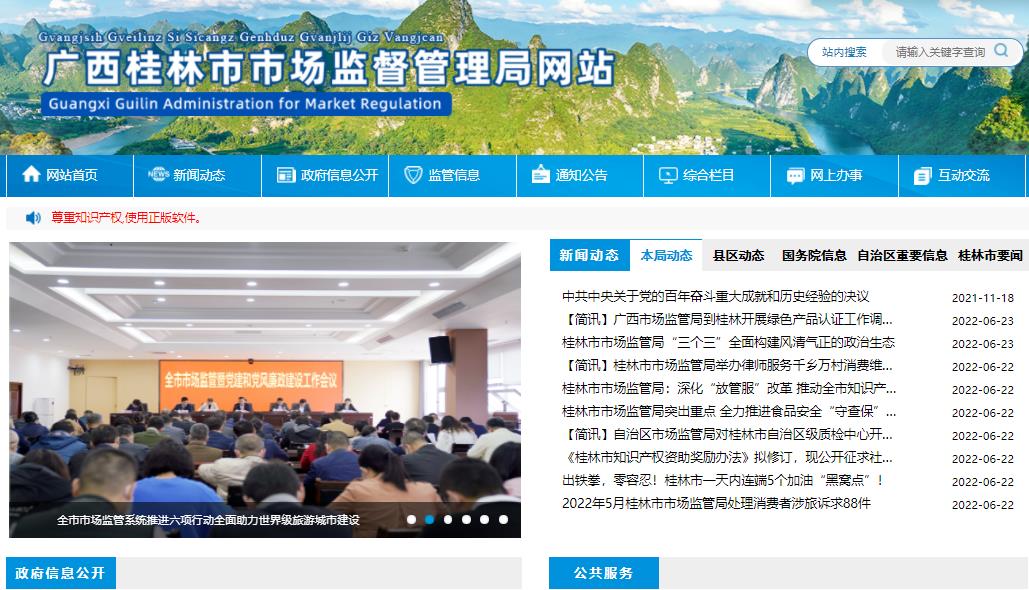 桂林市市場監督管理局網址:https://scjdglj.guilin.gov.cn/