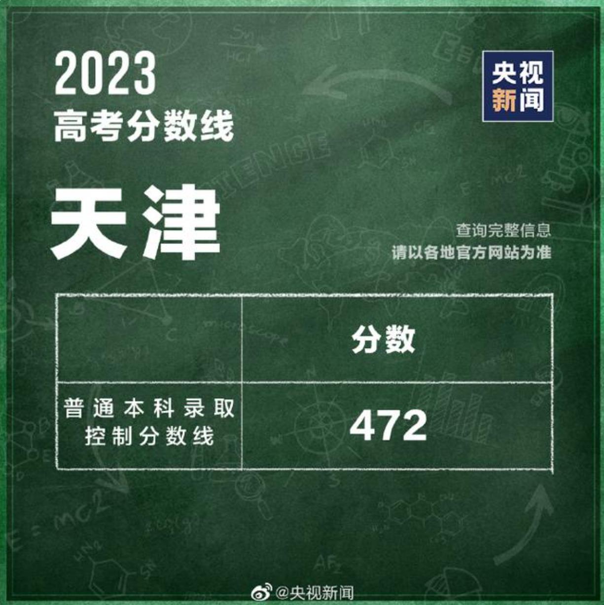 查詢鏈接:天津市2023年普通高考本科錄取控制分數線確定