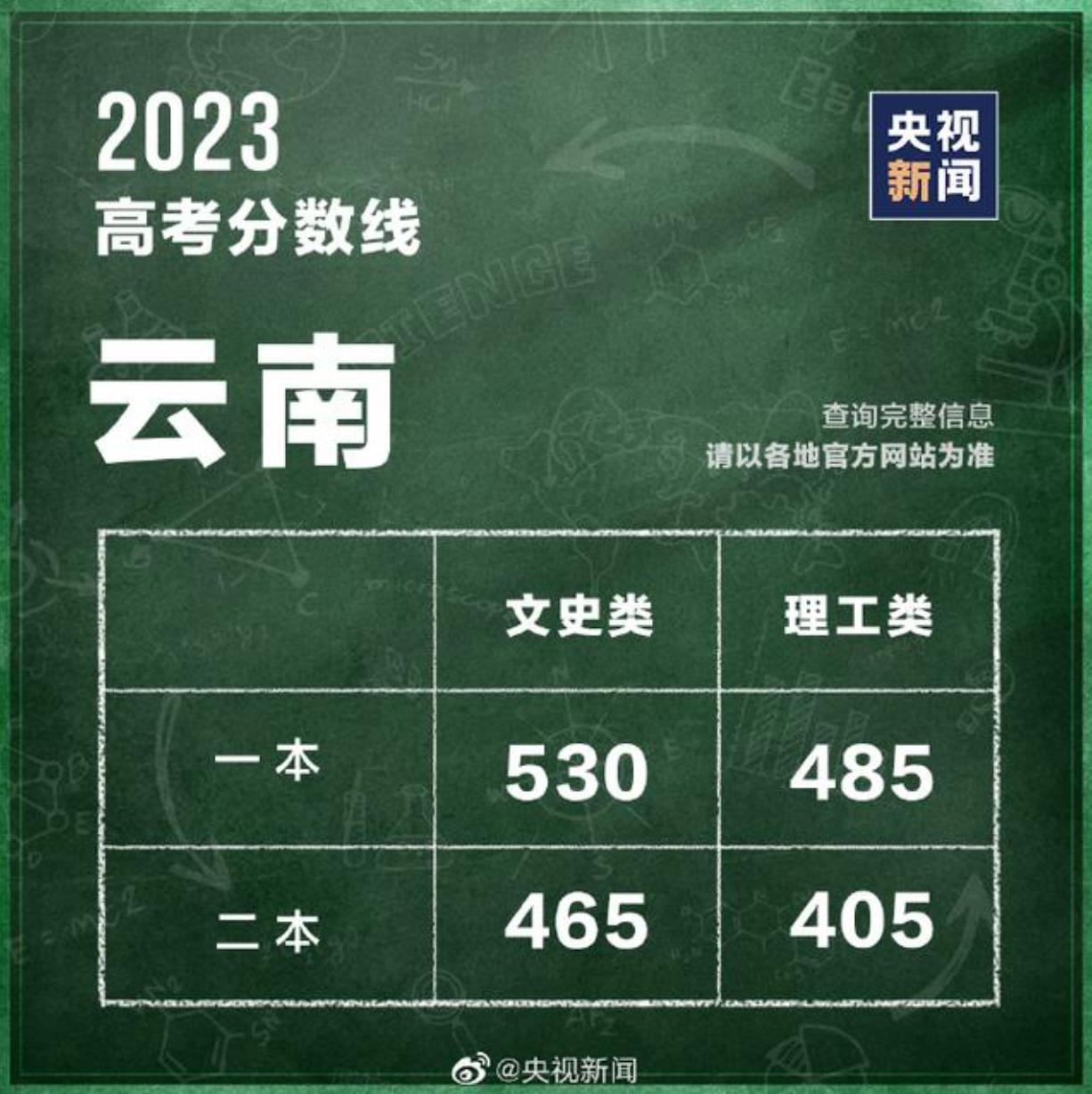 查詢鏈接:云南省2023年普通高校招生錄取最低控制分數線