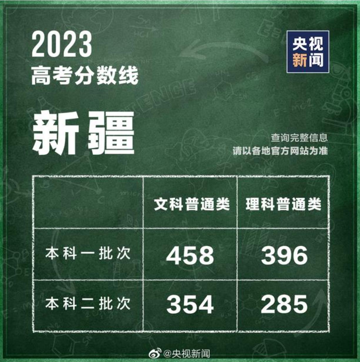 查詢鏈接:新疆2023年普通高校招生各批次最低投檔控制分數線確定