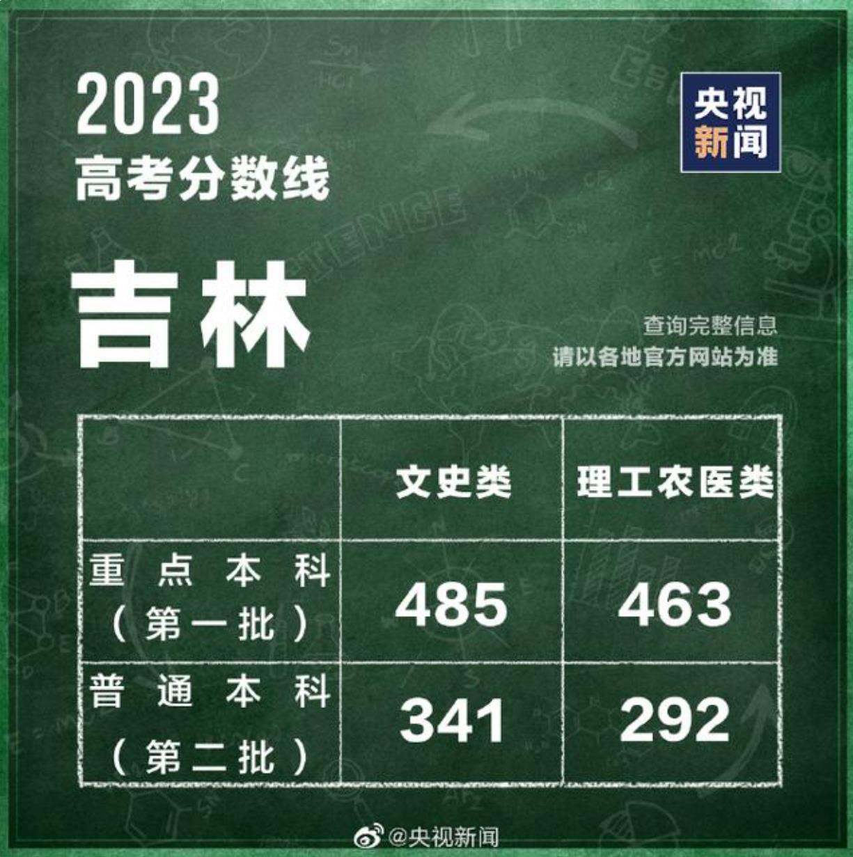 查詢鏈接:2023年吉林省普通高考本專科各批次錄取最低控制分數線