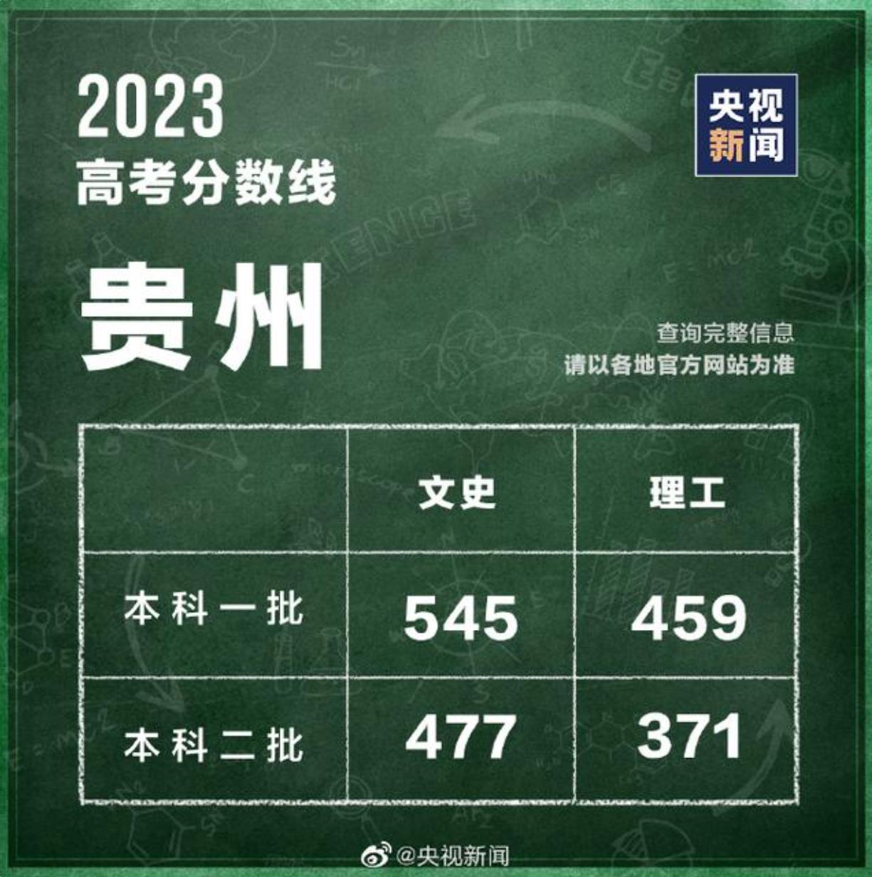 查詢鏈接:2023年貴州高考文史、理工類分數線劃定