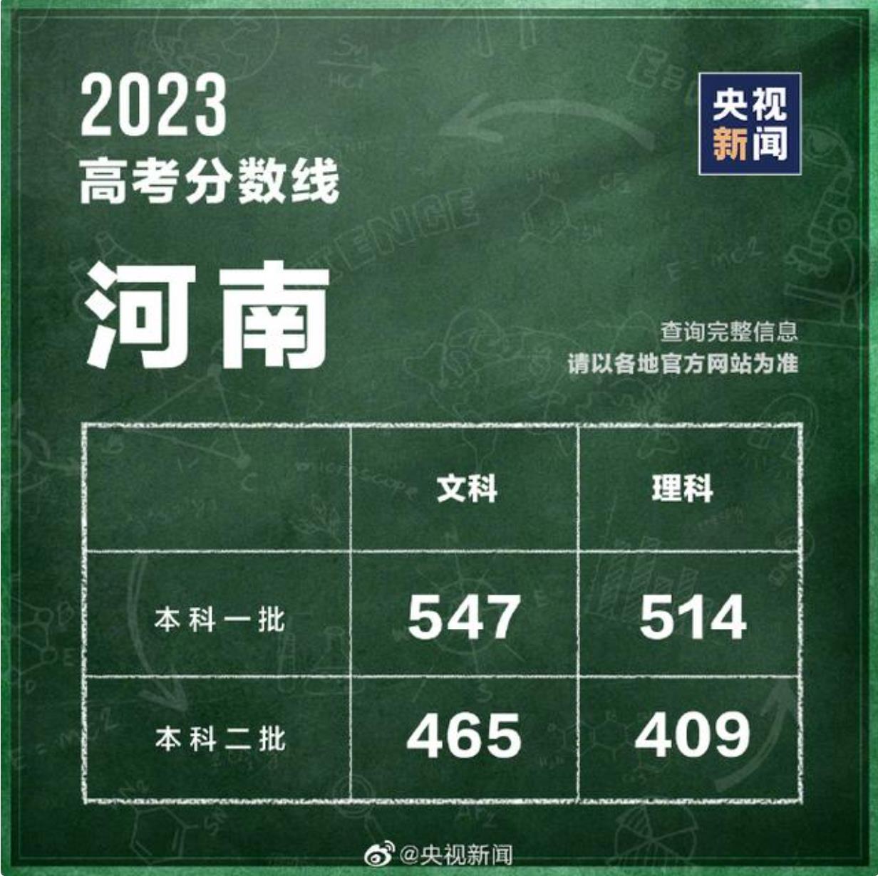 查詢鏈接:河南省2023年普通高校招生錄取控制分數線