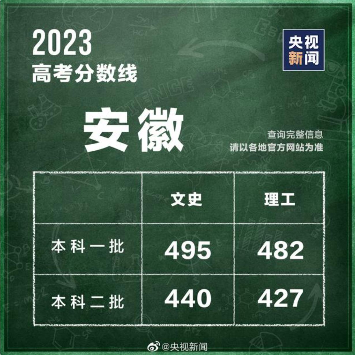 查詢鏈接:安徽省2023年普通高校招生各批次錄取控制分數線公布