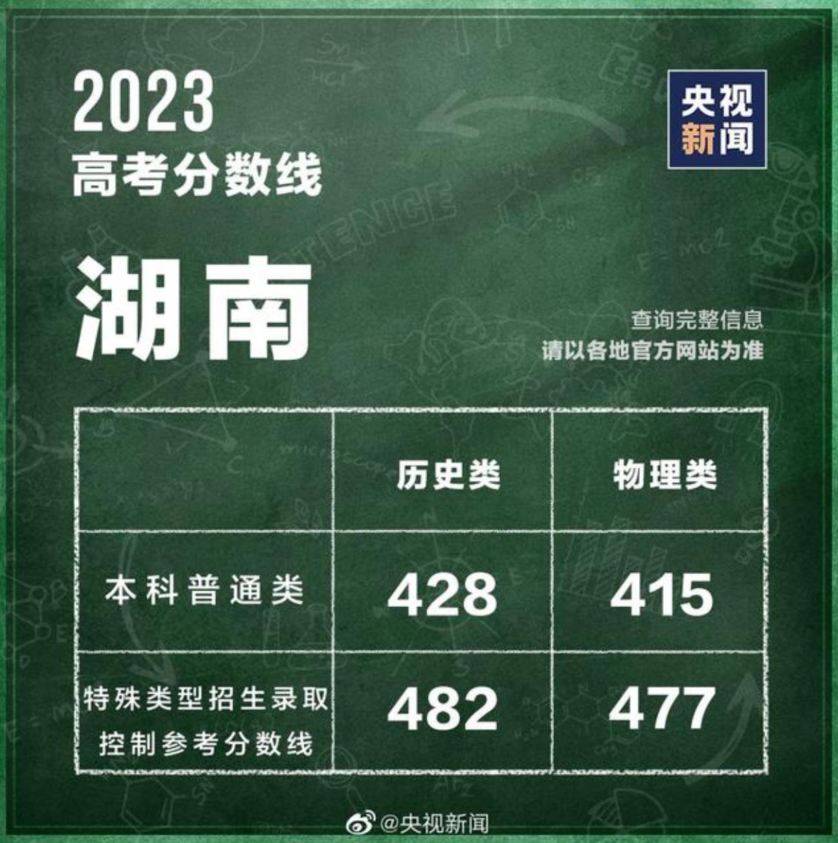 查詢鏈接:湖南省2023年普通高校招生錄取控制分數線