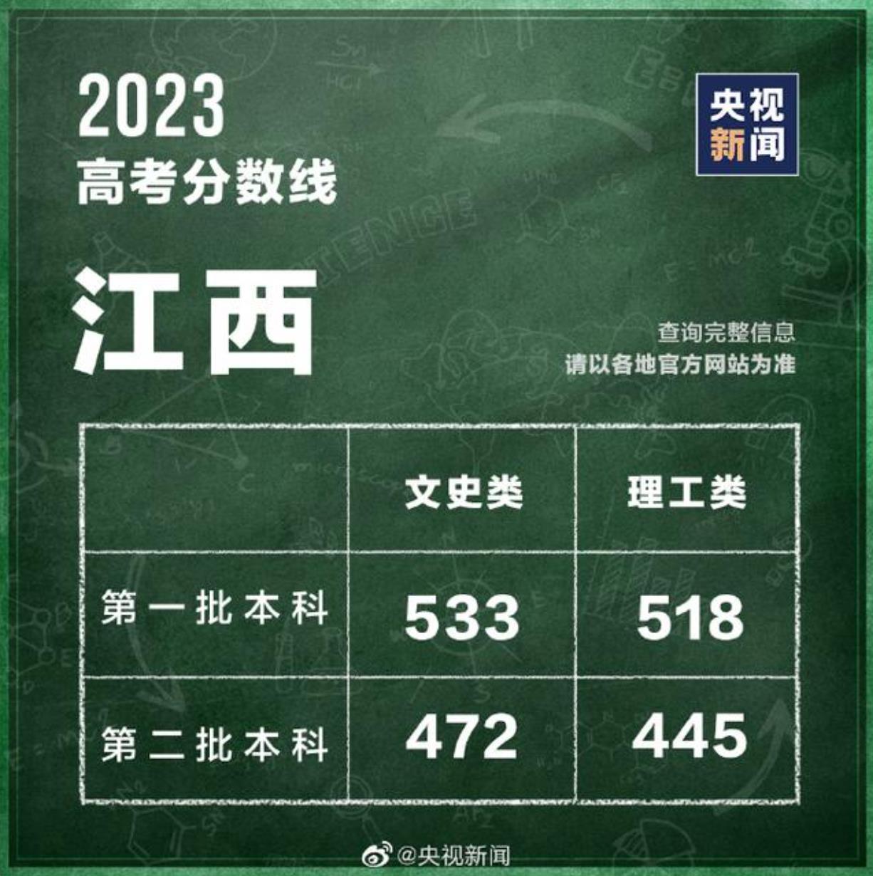 查詢鏈接:江西省2023年高招文史、理工類各批次文化錄取控制分數線
