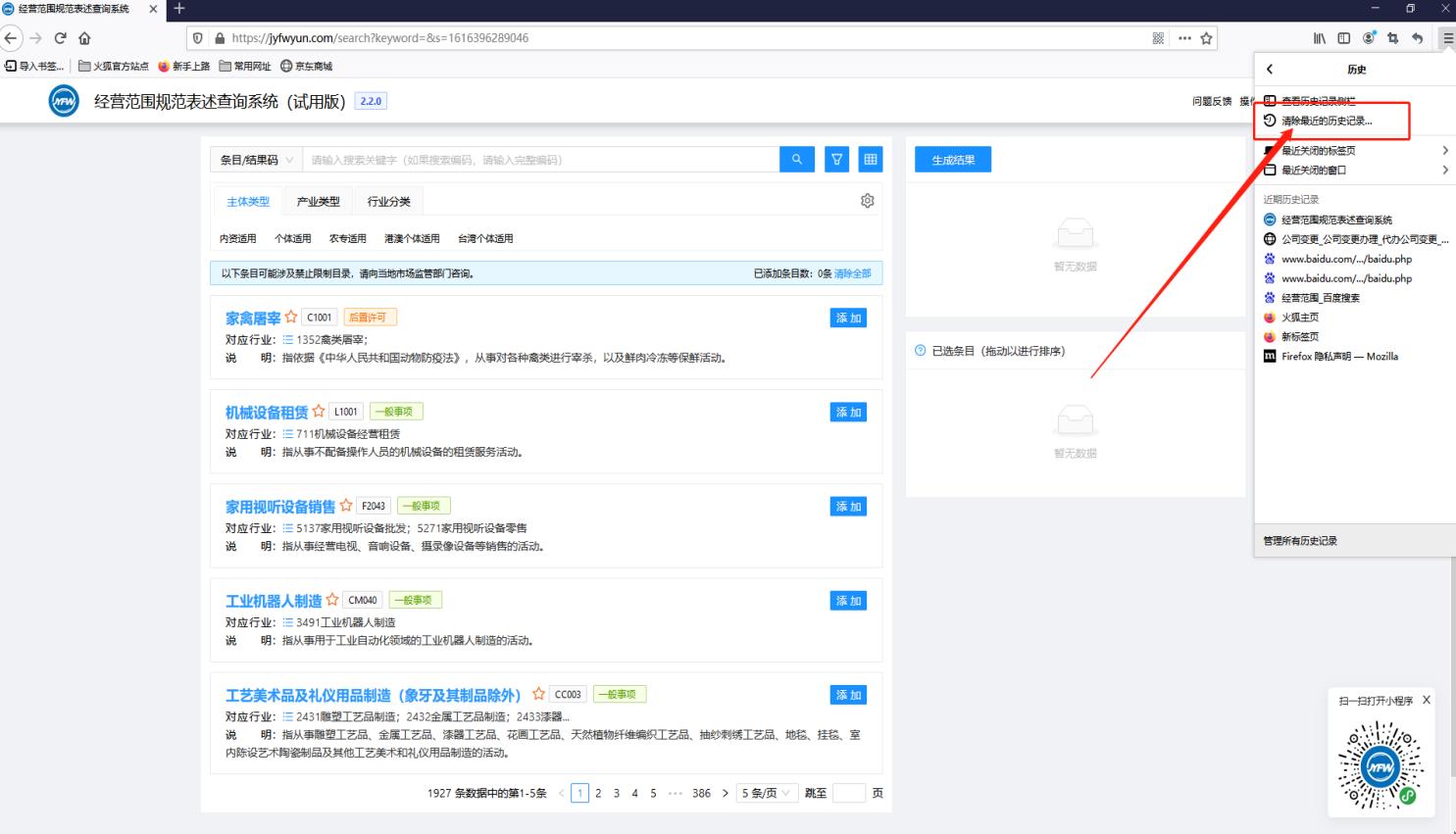 經(jīng)營(yíng)范圍規(guī)范表述查詢系統(tǒng)如何在查詢系統(tǒng)上添加經(jīng)營(yíng)范圍?(pc端)