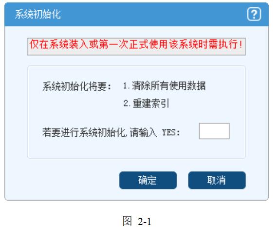 點擊“系統維護”菜單,選擇 “系統初始化”項,在彈出對話框中輸入“YES”后點擊“確定”按鈕,即可完成系統初始化操作,并重入系統(僅在系統裝入或第一次正式使用該系統時執行)。如圖: