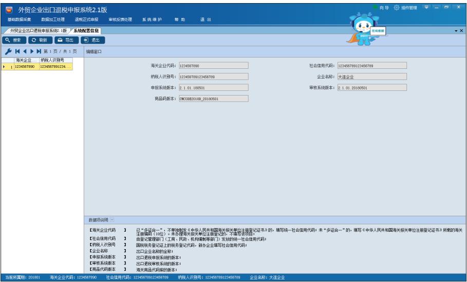 若需進行企業信息的查詢,可到“系統維護”菜單下選擇“系統配置”項下的“系統配置信息”中查詢,如圖: