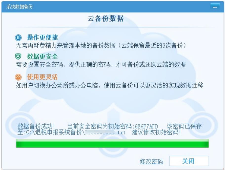 顯示備份數據成功,數據備份到云端,如圖: