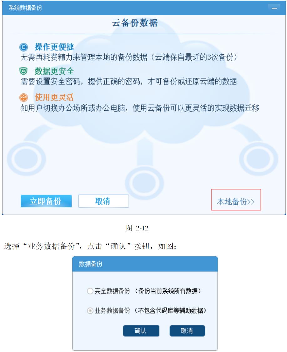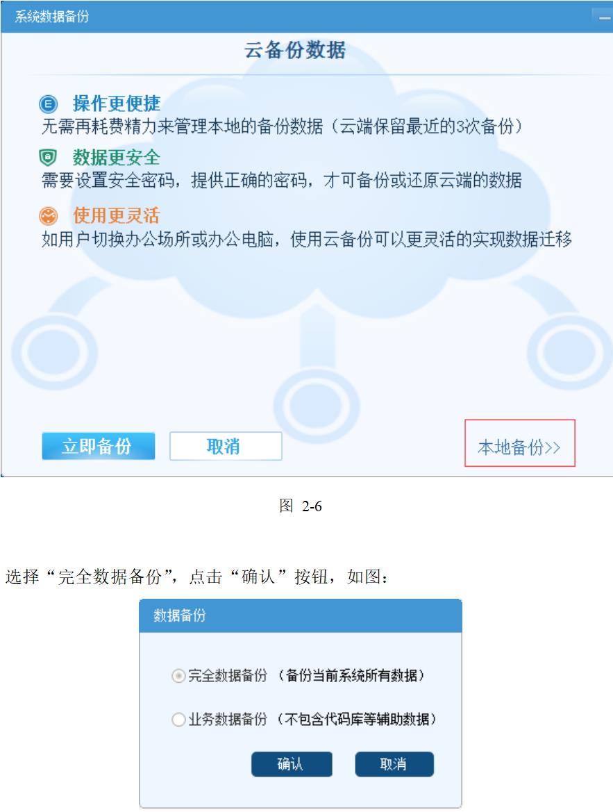 點擊“系統維護”菜單,選擇 “系統數據備份”項,系統彈出對話框后,選擇“本地備份”,如圖: