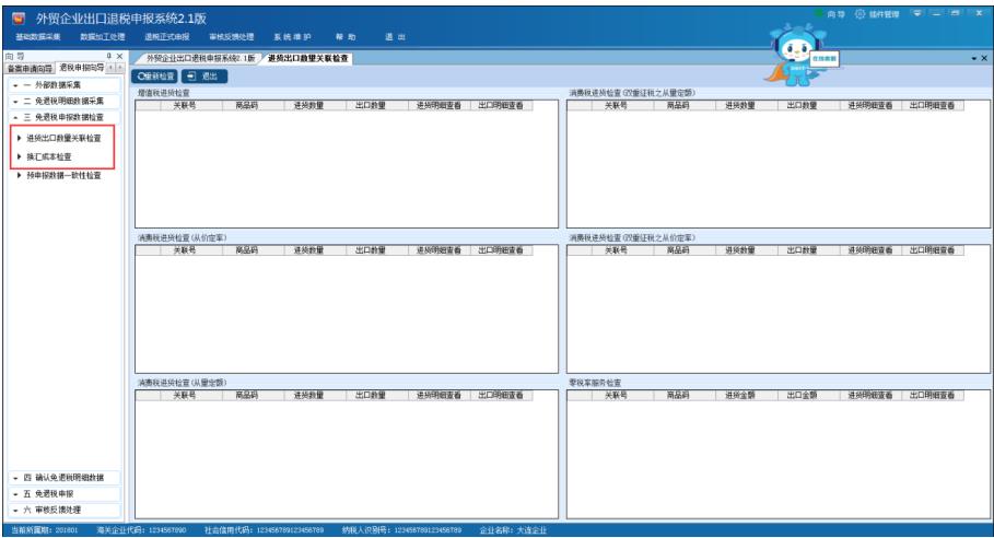 代表性界面:外貿系統《進貨出口數量關聯檢查》。