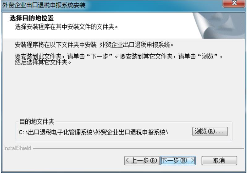 2. 雙擊運行安裝軟件,安裝路徑建議為系統默認路徑“C:\出口退稅電子化管理系統\”;