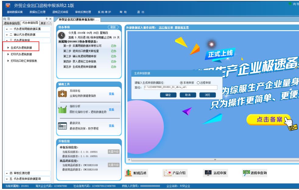 根據各地稅局要求選擇生成其他申報數據類型,如去稅局審核需選擇本地申報;如通過遠程審核,則選擇遠程申報。