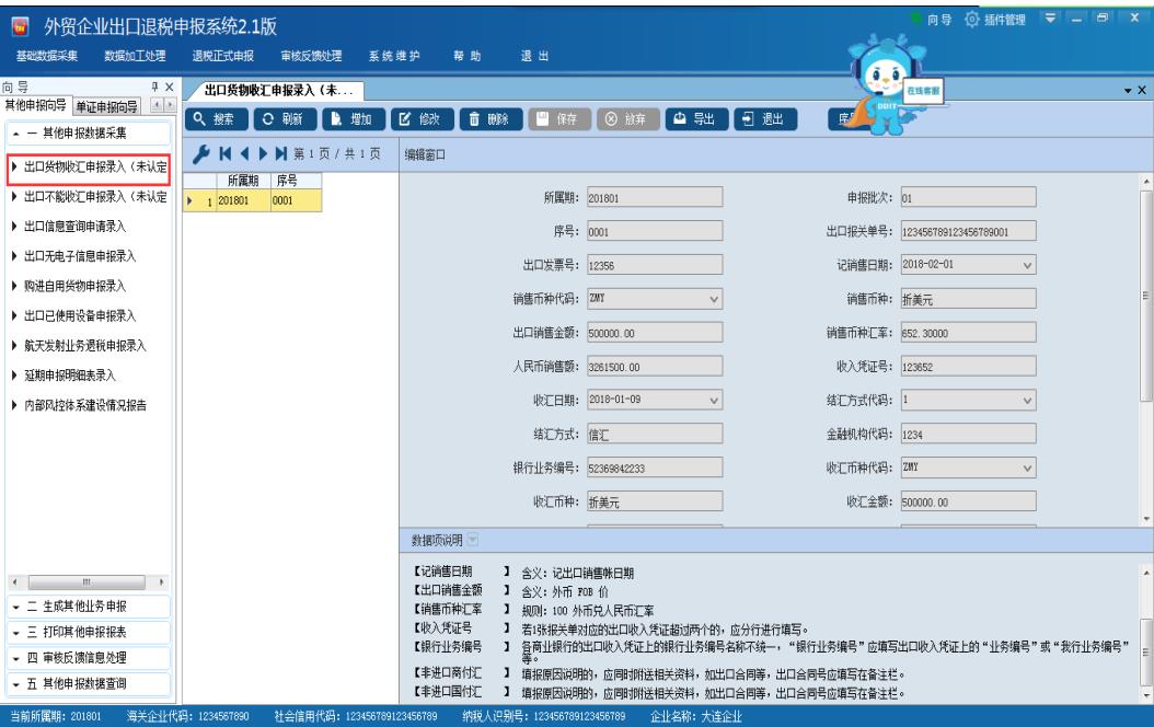 2. 生成收匯申報數據(未認定)模塊所對應的是數據采集中的“出口貨物收匯申報/不能收匯(未認定)”表單;