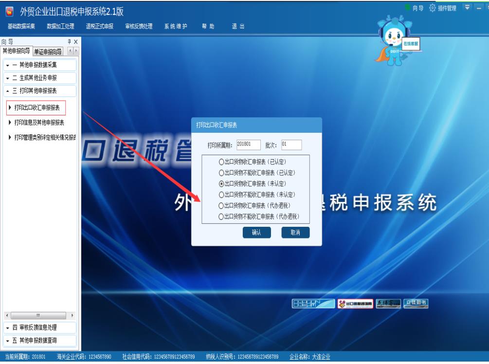 打印申報表中打印的為“出口貨物收匯申報/不能收匯(未認定)”表單。