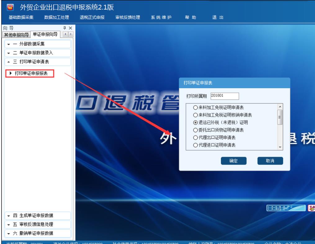 選擇申報系統“單證申報向導”第三步“打印單證申請表”中的“打印單證申報報表”,選擇對應表單進行打印,如圖: