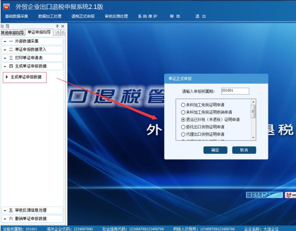 選擇申報系統“單證申報向導”第四步“生成單證申報數據”,選擇對應表單進行生成,如圖: