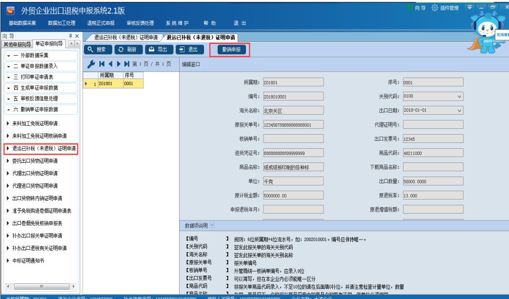 如對于已經生成申報的數據發現錯誤,可在此項中進行對應數據的撤銷,如圖: