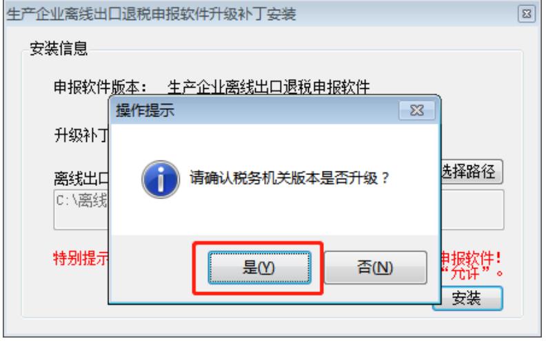 3.確認(rèn)稅務(wù)機(jī)關(guān)版本已升級(jí),點(diǎn)擊“是”進(jìn)行升級(jí)。否則點(diǎn)擊“否”,停止升級(jí)。