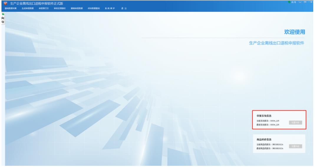 5. 運(yùn)行出口退稅申報(bào)系統(tǒng),在主界面右下角查看版本,確認(rèn)是否升級(jí)成功。