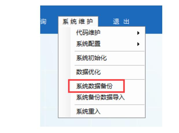 (1)若要重新安裝出口退稅申報(bào)軟件,請(qǐng)先將當(dāng)前出口退稅申報(bào)軟件數(shù)據(jù)進(jìn)行備份,點(diǎn)擊“系統(tǒng)維護(hù)”→“系統(tǒng)數(shù)據(jù)備份”如圖:
