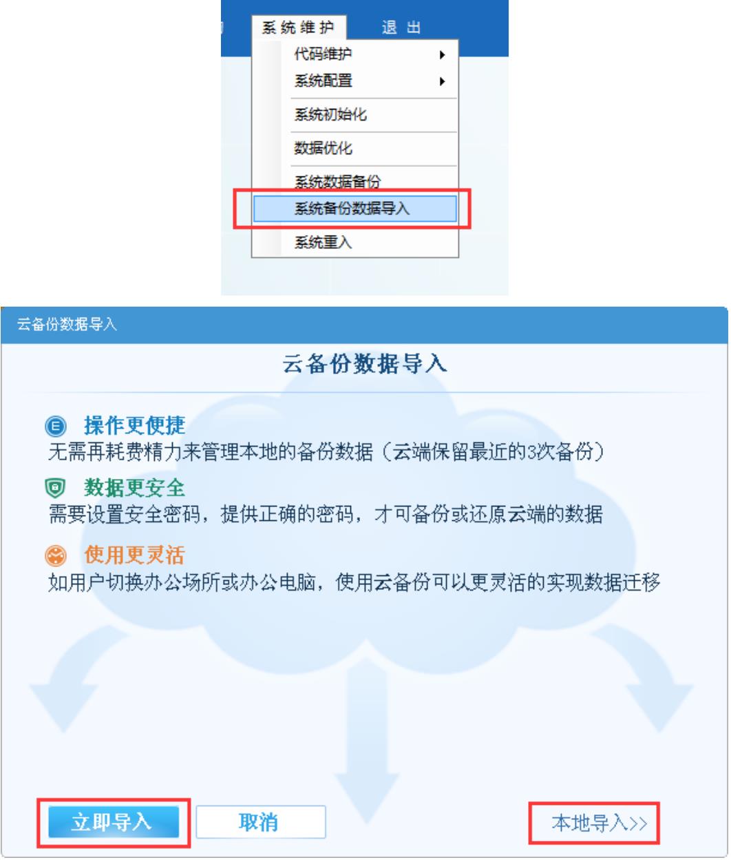 (4)安裝成功后啟動(dòng)申報(bào)系統(tǒng),點(diǎn)擊“系統(tǒng)維護(hù)”→“系統(tǒng)備份數(shù)據(jù)導(dǎo)入”,將備份數(shù)據(jù)導(dǎo)入至新安裝的申報(bào)系統(tǒng)中,如圖: