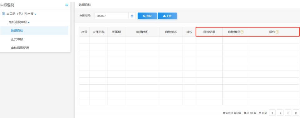 頁面會自動跳轉(zhuǎn)到數(shù)據(jù)自檢界面,進(jìn)行數(shù)據(jù)自檢。自檢操作可參考“4 出口退稅自檢服務(wù)”進(jìn)行操作。