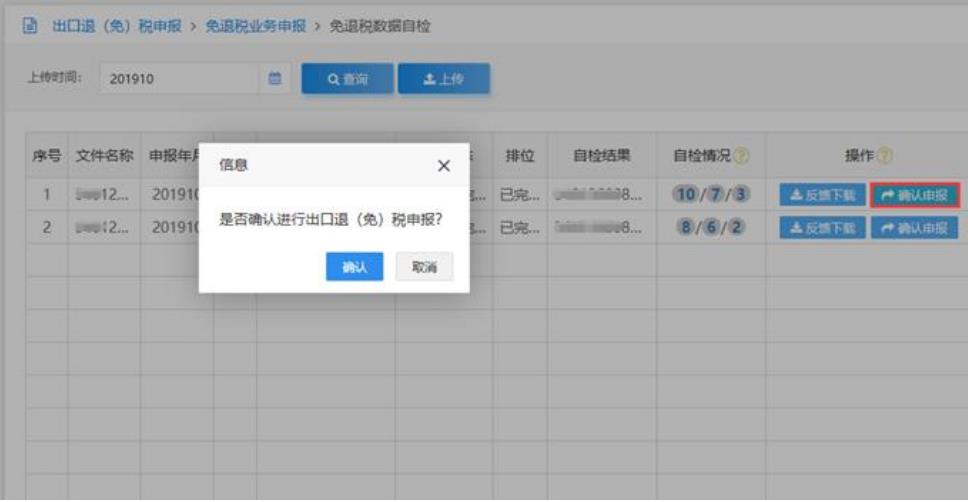 出口企業(yè)可根據(jù)申報數(shù)據(jù)自檢結(jié)果,人工確認(rèn)是否將本次自檢數(shù)據(jù)作為出口退(免)稅申報數(shù)據(jù)傳遞至稅務(wù)機(jī)關(guān)出口退稅系統(tǒng)。