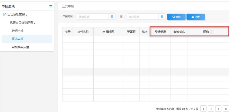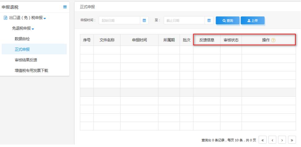 企業(yè)可通過“反饋信息”、“審核狀態(tài)”、“操作”等欄查看受理狀態(tài)的實時信息,以及查看狀態(tài)、疑點下載等操作。如圖:
