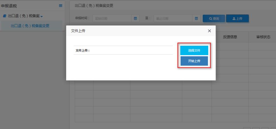 點擊每個模塊后方的離線申報,進(jìn)入對應(yīng)業(yè)務(wù)模塊操作頁面。(以出口退(免)稅備案變更為例)